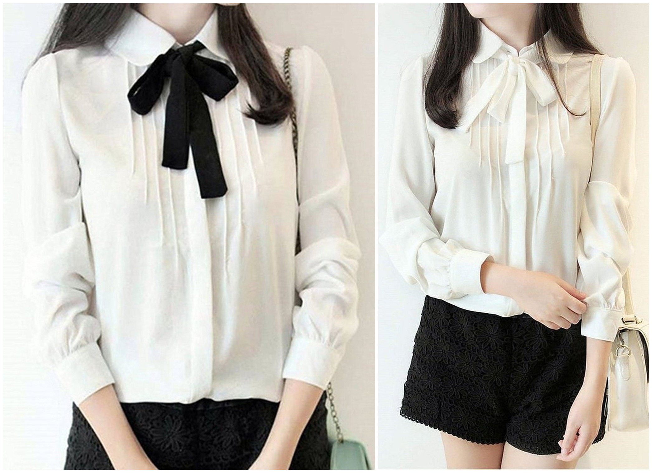 Sweet chiffon lace bowknot long sleeve shirts